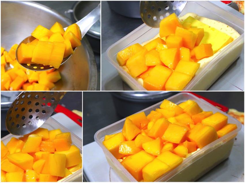 接著一層,就是鋪滿~滿滿的!新鮮芒果塊!