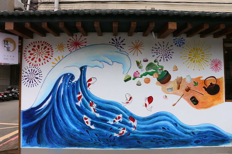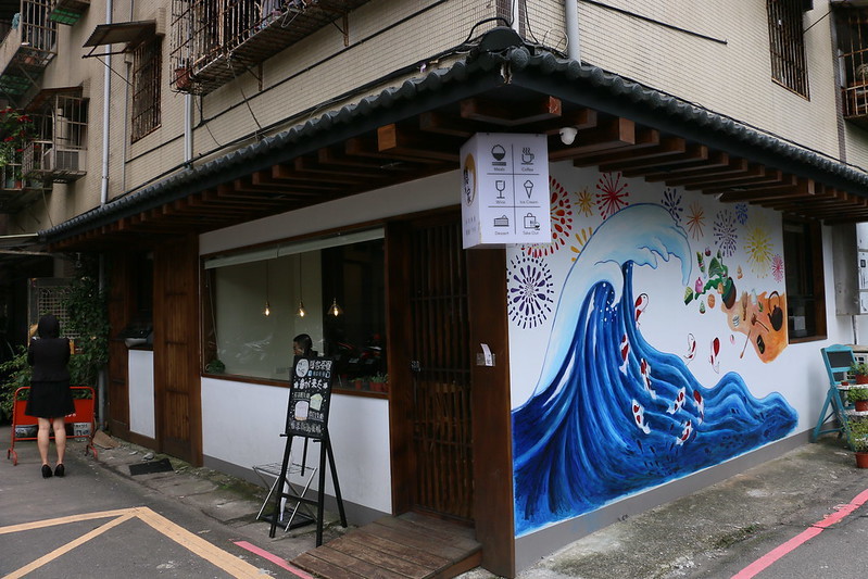 精緻的日式裝潢,門口的彩繪牆,是汐止的IG熱門打卡點