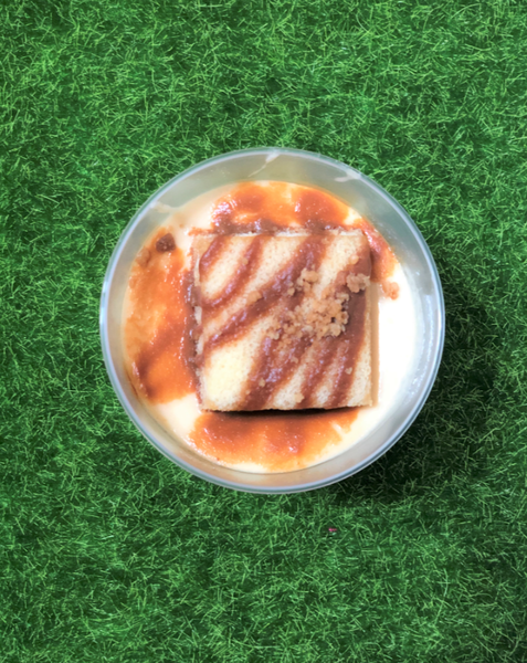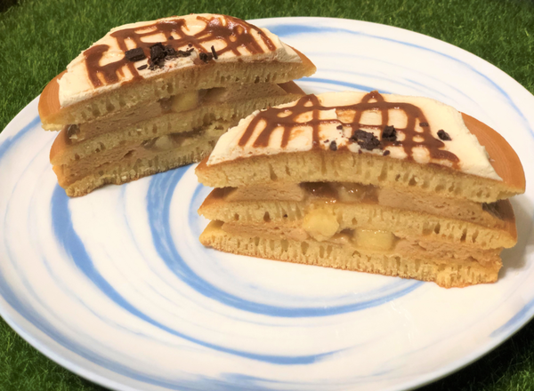 兩塊蛋糕體中間包著牛奶糖味的奶油,