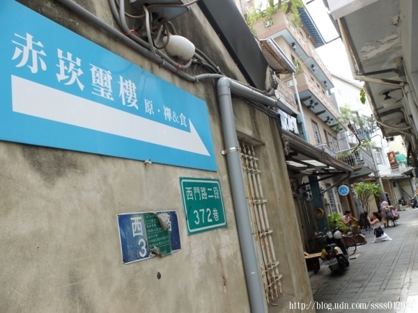 ▲鑽入小巷內稍微繞了一下終於發現「赤崁璽樓蔬食餐廳」的招牌指引