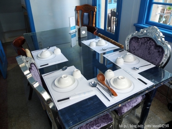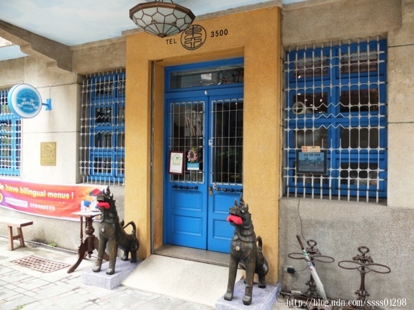 而從門口就能看出重新整理粉刷後的「赤崁璽樓蔬食餐廳」多以藍色為主色調