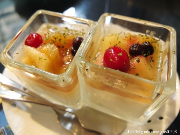 ▲每一季會更換甜點和飲品,這次吃到的是外觀點綴很可愛的水果奶酪
