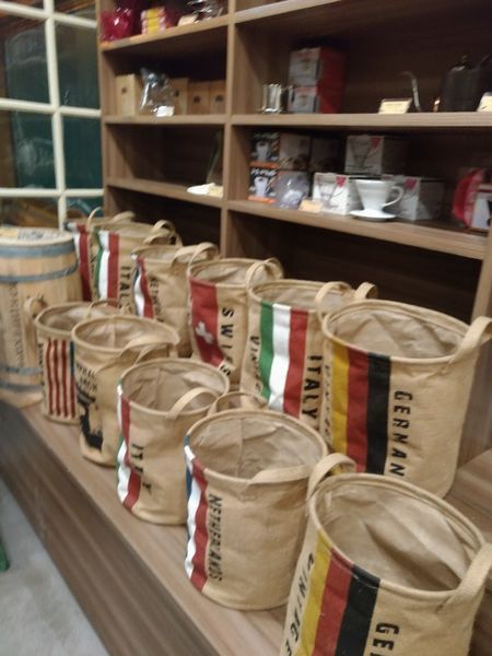 店門口左邊那一袋袋的咖啡豆袋更是以各國國旗標誌來呈現,感覺就相當的國際化