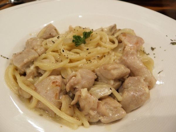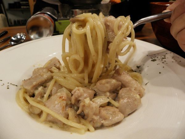 白醬濃郁的包覆著義大利麵,不會感覺膩口, 相當推薦給愛吃白醬的好友們,重點那個雞肉份量又多而且相當的嫩