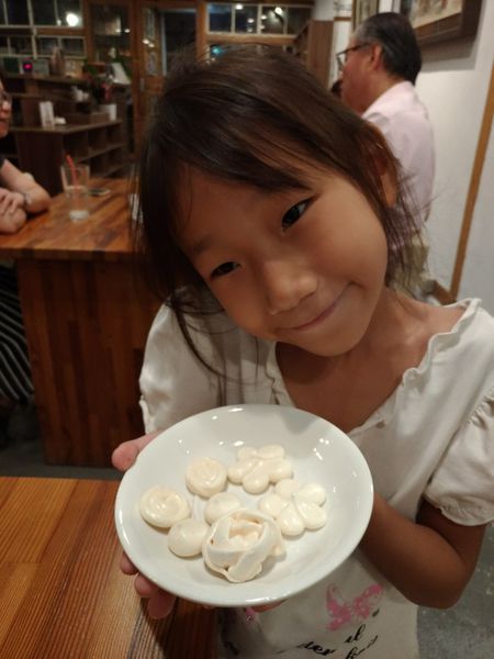 在等候餐點的同時,店員相當親切的居然給阿白蛋白餅,白白最喜歡蛋白餅了,甜甜的帶著脆度相當討喜