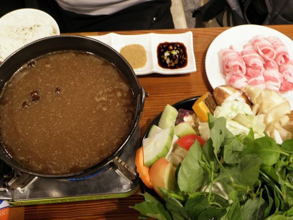 肉盤給的份量也算中等, 點這個鍋的可是男性友人,不過他說光看這樣子他就覺得他可能會飽到天靈蓋,我們都覺得他太誇張了, 不過偷喝咖啡火鍋的湯底相當的溫順好喝,而且咖啡的香是喝得出來的,不像 Coco在雲林古坑喝到的咖啡雞反而中藥材的味道多過於咖啡的香氣