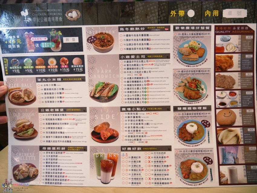 早安公雞農場的外觀和一般早餐店不同,扣除掉那隻公雞和字,我覺得比較像是賣早午餐或是美式餐廳。