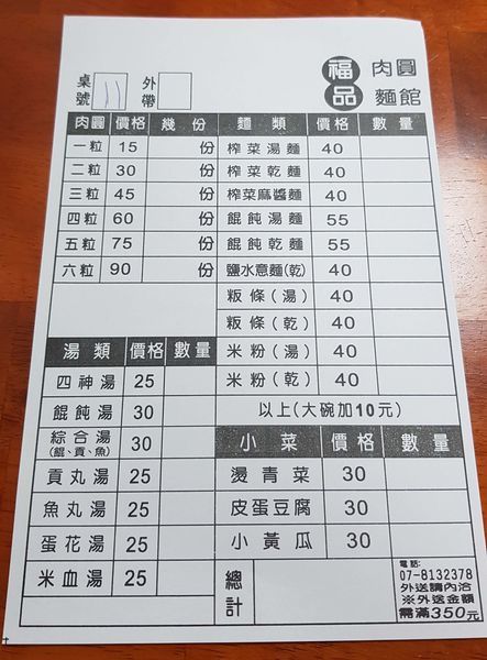 菜單上頭已經幫大家寫好肉圓的數量跟價格了