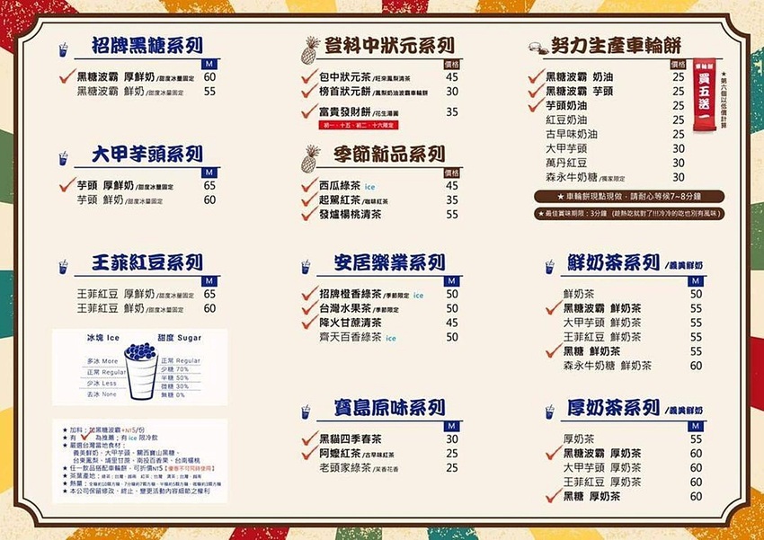 登科中狀元、鮮奶茶、努力生產車輪餅系列..品項不算多,但每一款都是真材實料的飲品~