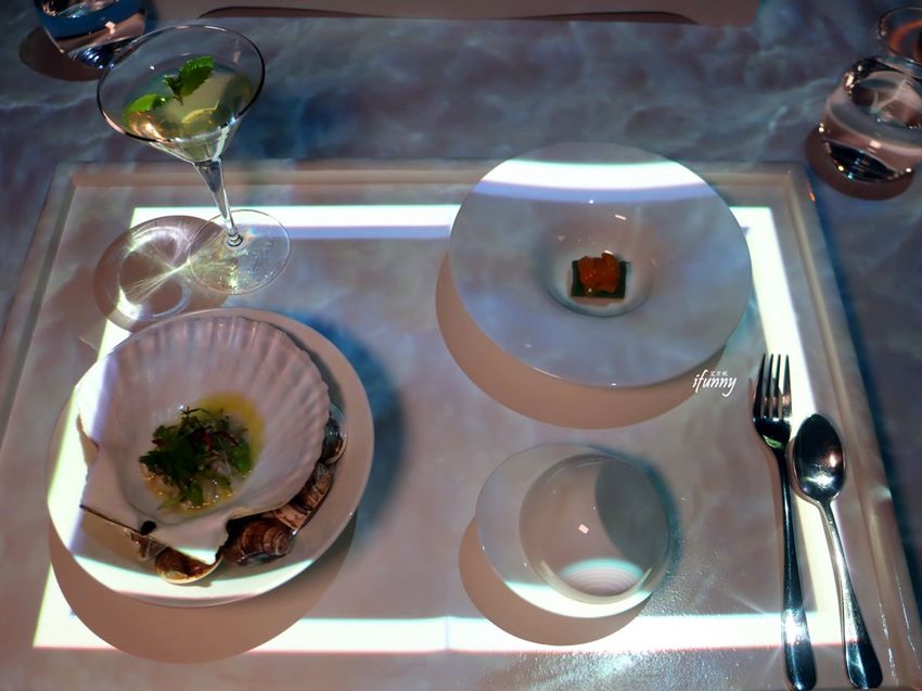 當整張桌布都變成海洋時,我們的前菜就在此時上桌了!