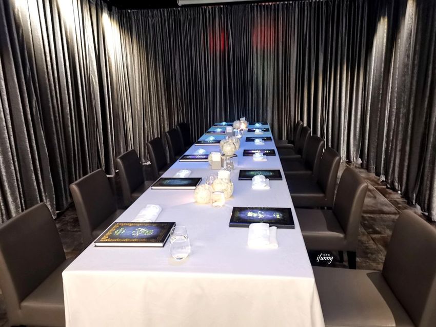 雖然Taste Lab餐廳內部寬敞,但實際上只開放這個大黑幕圍起來的內在空間,裡頭是特別的座席。