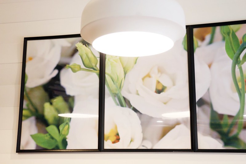 牆上掛了桔梗的照片,增添典雅的氛圍