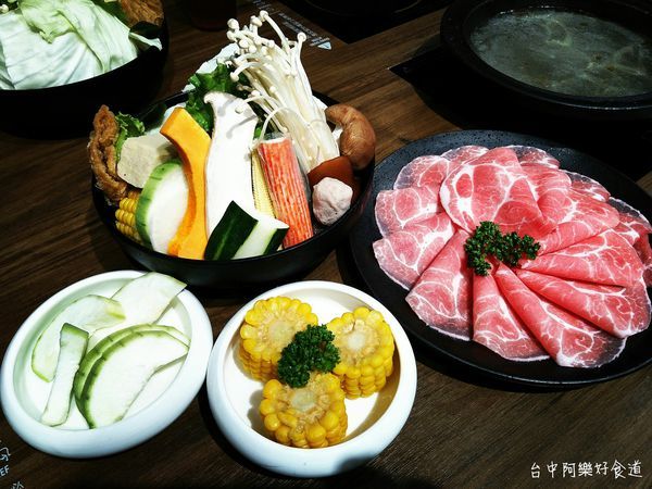 🔼小麥梅花豚鍋,基本菜盤加肉片,另加點玉米及絲瓜。