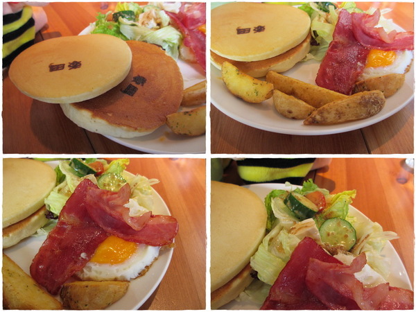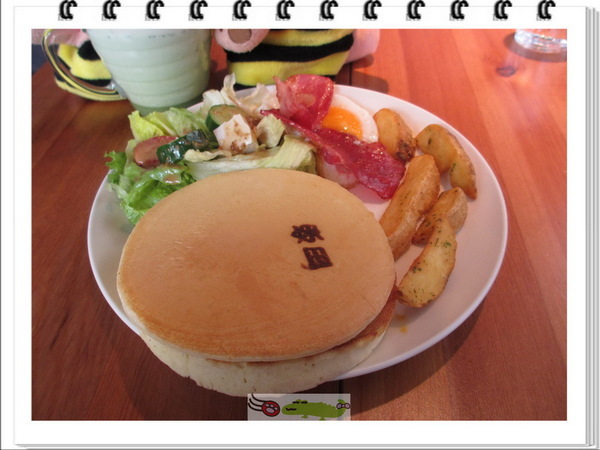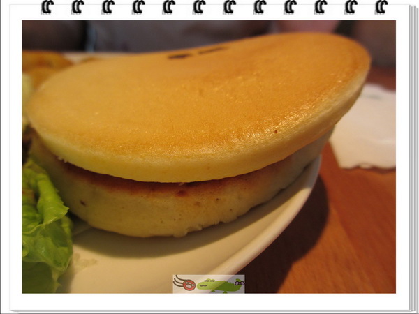 這邊的鬆餅是比較厚的那種,口味吃起來就像小時候吃過的紅豆餅皮一樣,是我姊姊都喜歡的那種喔,吃起來相當的順口好吃!旁邊配菜的口味也不錯,薯條有調味過,吃起來很香。沙拉也很新鮮醬汁也好吃!姊姊甚至覺得,他們家的鬆餅口味跟日本的不二家很類似呀!