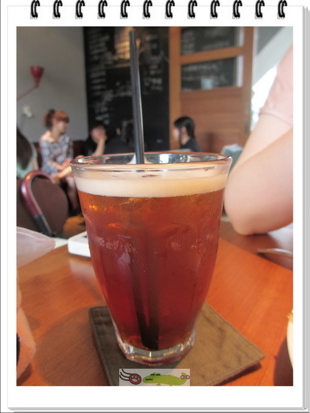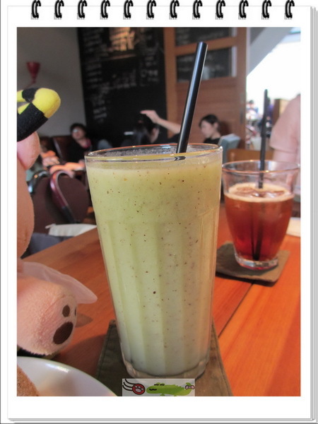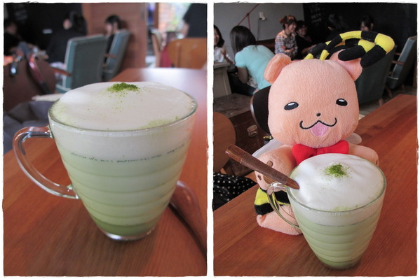 這是我另外換的飲料「抹茶牛奶」,喝起來函蠻順口的,而且看起來相當漂亮,上來時用透明杯裝的,所以我本來還以為是冰的送錯了,沒想到真的是熱的~XD