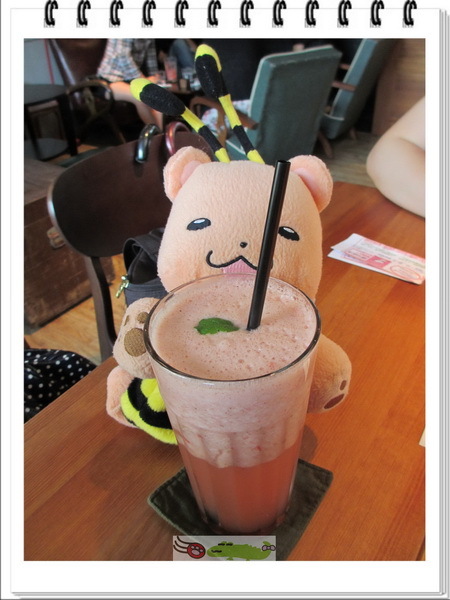 因為受到「季節限定」的迷思,所以飲料點了這杯季節限定的「梅子蕃茄汁」(100元)因為看到介紹是「台南知名老店梅子和有機蕃茄的組合」,所以還以為是新鮮的梅子加上蕃茄汁,點餐的時候既沒有特別詢問。不過沒想到喝入口是梅粉的味道,還蠻失望的。