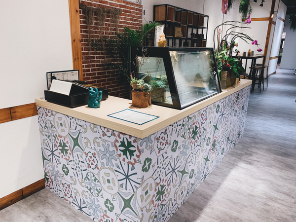 門口的牆就是打卡點啦~復古磁磚拼貼而成的牆面