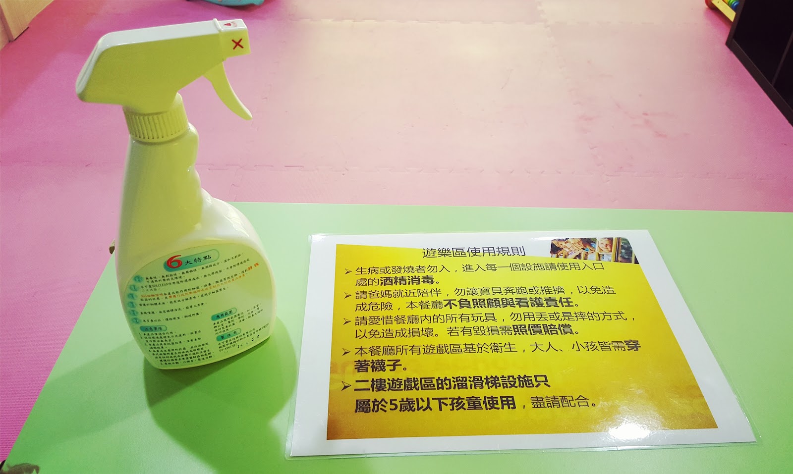 遊戲區入口都有放消毒酒精,不過店員滿忙碌的,無法時刻守在入口處注意孩子是否有確實消毒,只能希望家長們都能共同維護,減少病菌進入遊戲區,讓大家都可以放心玩耍囉!