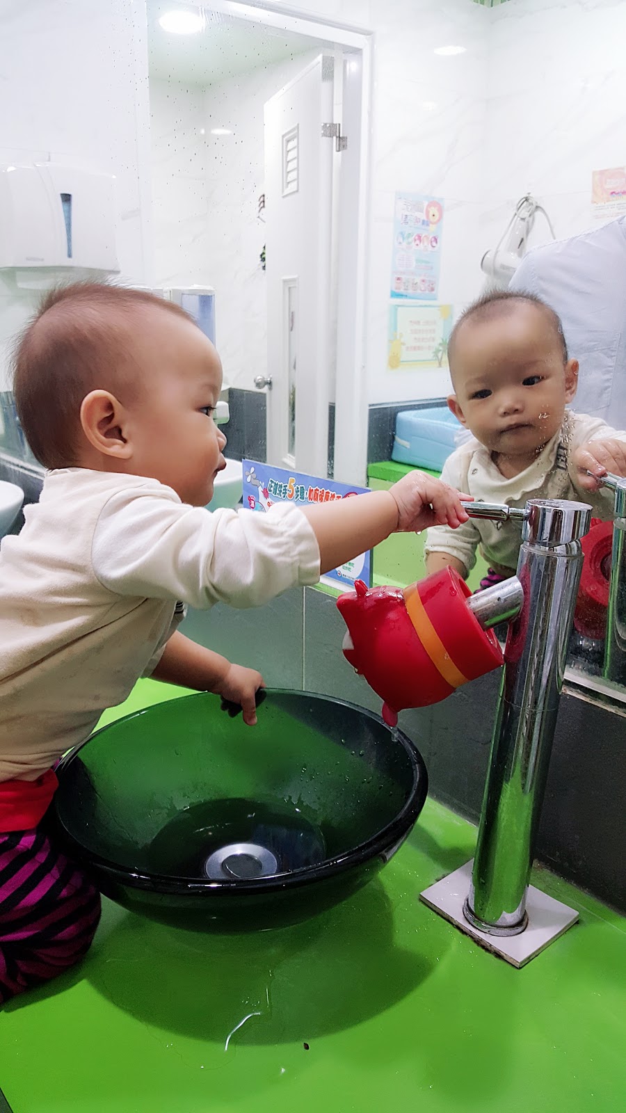 親子餐廳不能沒有的設施之一尿布台,旁邊竟然有吹風機,滿少見的耶,小孩總是有時候會需要清洗呀!