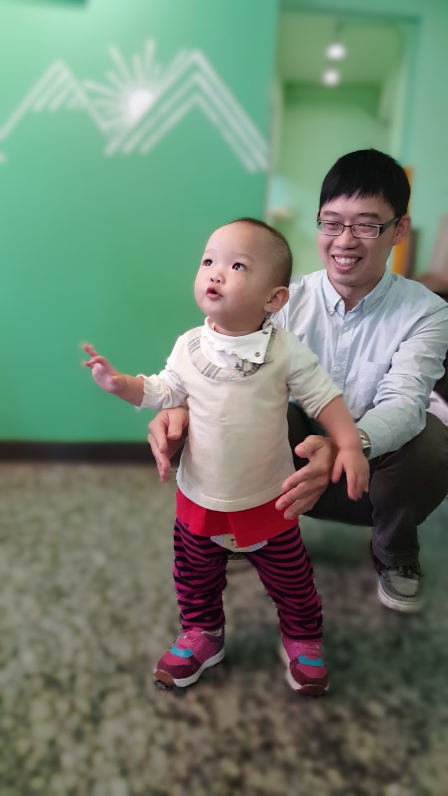 女兒會爬行能坐穩後,假日就想要帶她出門走走。親子餐廳是不錯的選項之一,遊戲區可以讓小孩放電,有許多平常沒玩過的玩具,還可以和其他小朋友小小交流。