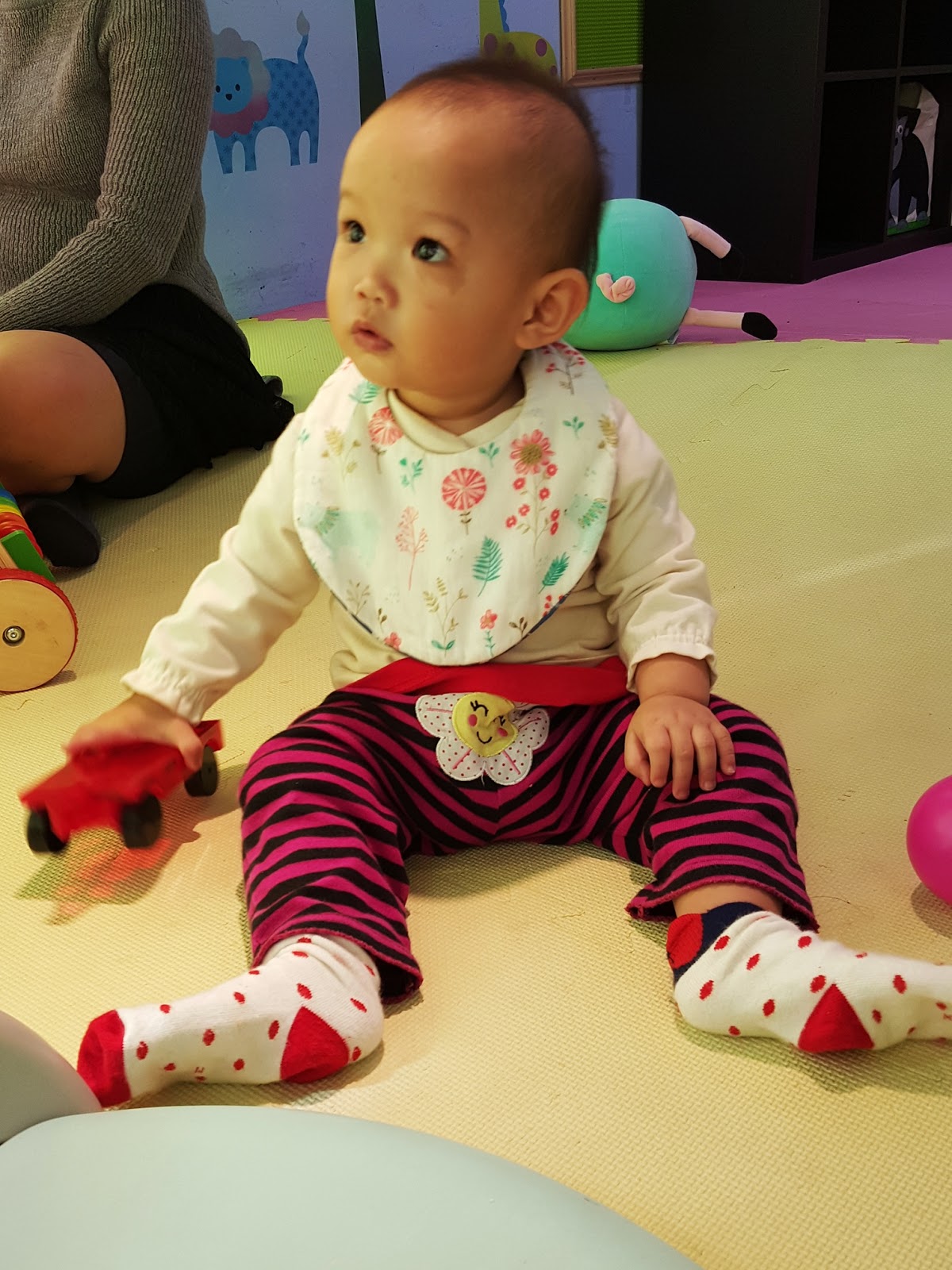 剛滿一歲的女兒在這裡玩得不亦樂乎,爸媽悠哉輪流享用完午餐。稍微過了小孩午睡時間,平常這時候開始想睡覺,會灰灰討抱,今天被玩具環繞的女兒竟然精神還很好,結果回家時一上車沒三分鐘就睡著了XD 。