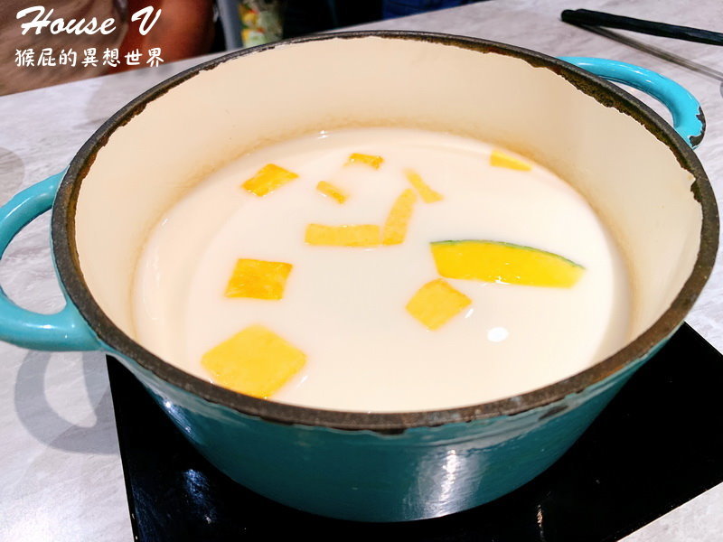 南瓜湯底也有加牛奶當基底,喝起來其實跟牛奶鍋滿像的,要煮到後面才變南瓜鍋