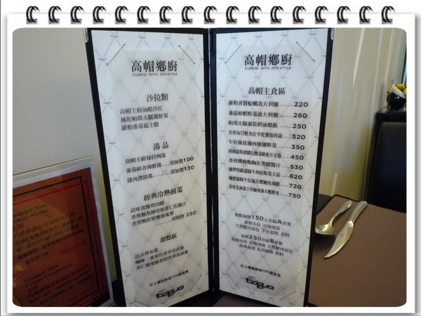 整體來說這次「高帽鄉廚」的用餐經驗我還蠻愉快的,餐點份量滿點一點也不會是因為團購卷就縮水顯示是相當有誠意的一間店家,不過因為團購卷就砸了自己的招牌!(我真的看過有些人的用餐經驗是上來的菜和網站上的圖片不一樣大小~@@),如果是原價 來用餐的話價位也是有中等的義大利麵可以選擇,服務也很親切,是間我會再度來訪的店家!XD