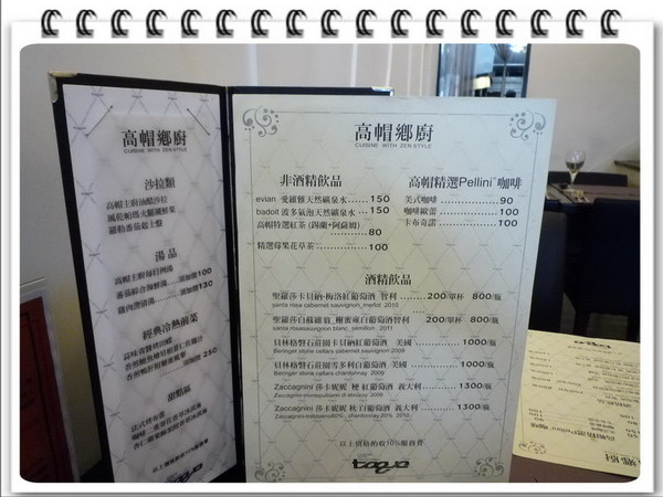 這次會來這家餐廳就是因為買了GROUPON的「高帽鄉廚toque」的雙人份法式全餐才會發現這家餐廳。餐點的內容是: