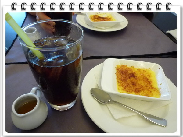 甜點是「焦糖烤布蕾」,鮮嫩布蕾加上焦糖當然不可能不好吃,但是希望能有更多甜點的選項,例如法式薄餅等可以符合多人的需求。雖然菜單上有「杏仁蘋果酥派」不過因為不是團購卷的菜單,只能待下次來品味啦~