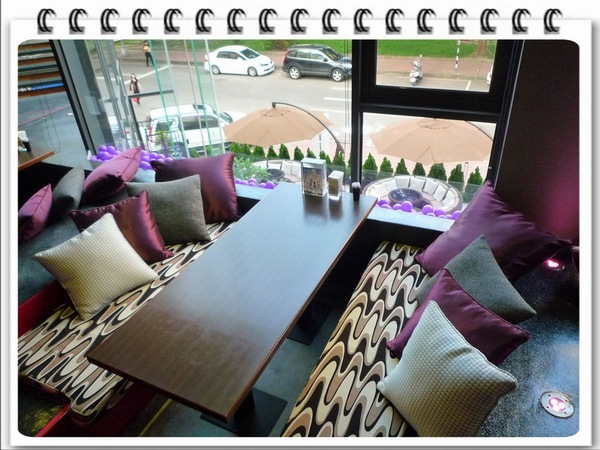 當天因為抵達時間還早,本來餐廳表示2樓還沒開放,後來有告知訂位時已經要求要坐在2樓靠窗位置才引導上了2樓,上了2樓又是另一種驚喜,因為室內採夜店LOUNGE BAR風格(但是走在走道上要小心因為有階差要小心跌倒)。