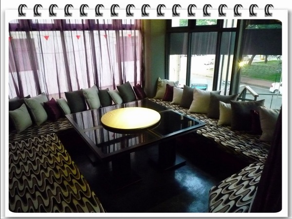 在團購券可以使用的第一個週一晚上就前往用餐,一看到紫色系的透明圍幕建築就相當驚艷。畢竟餐廳以紫色當基色可謂相當大膽,尤其喜歡一樓外面蒙古風的座位,但因為天氣實在太熱而且有蚊子所以還是選擇室內座位。倒是如果天氣涼爽三五好友坐在外面談心用餐一定很棒。唯一的問題是會被坐在2樓的客人行注目禮。XD