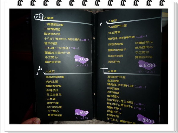 翻開菜單發現所謂「新臺灣料理」應該是類似以前北投溫泉區的酒家菜,比較鹹適合下酒,服務生也有告訴我們該店主推紅白酒,調酒也有但是比較少(之前每日有推出一款酒飲及飲料買一送一,目前有沒有不知道,有興趣的可以再詢問店家)。
