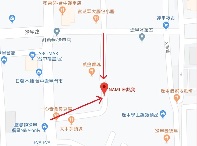 先給大家看看地圖~NAMI米熱狗在逢甲路19巷中 碧根商場門口