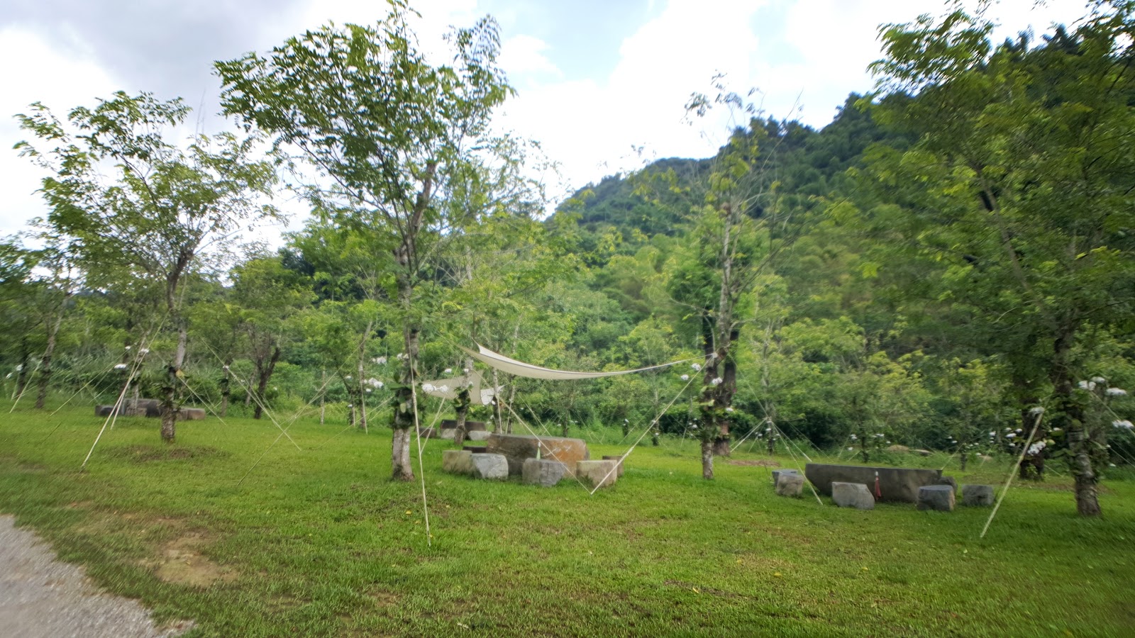 這次約了三寶媽咪阿觀一家五口一起來玩,小孩有玩伴最開心了。我們訂了含兩張雙人床的「大樟樹區」帳篷,中午在美濃享用了客家粄條、再逛了一下美濃市區後,就慢慢晃過來。