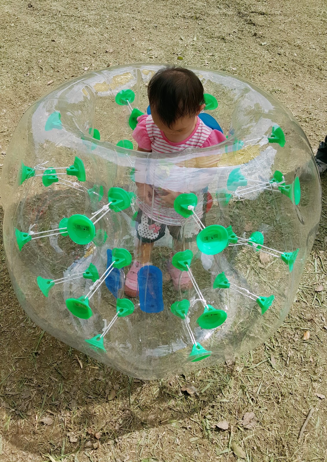 帶著孩子在草地上玩耍,我們帶了飛盤、球和泡泡機,園方也有準備戶外活動玩具,在入口辦理入住的地方可以借用喔!