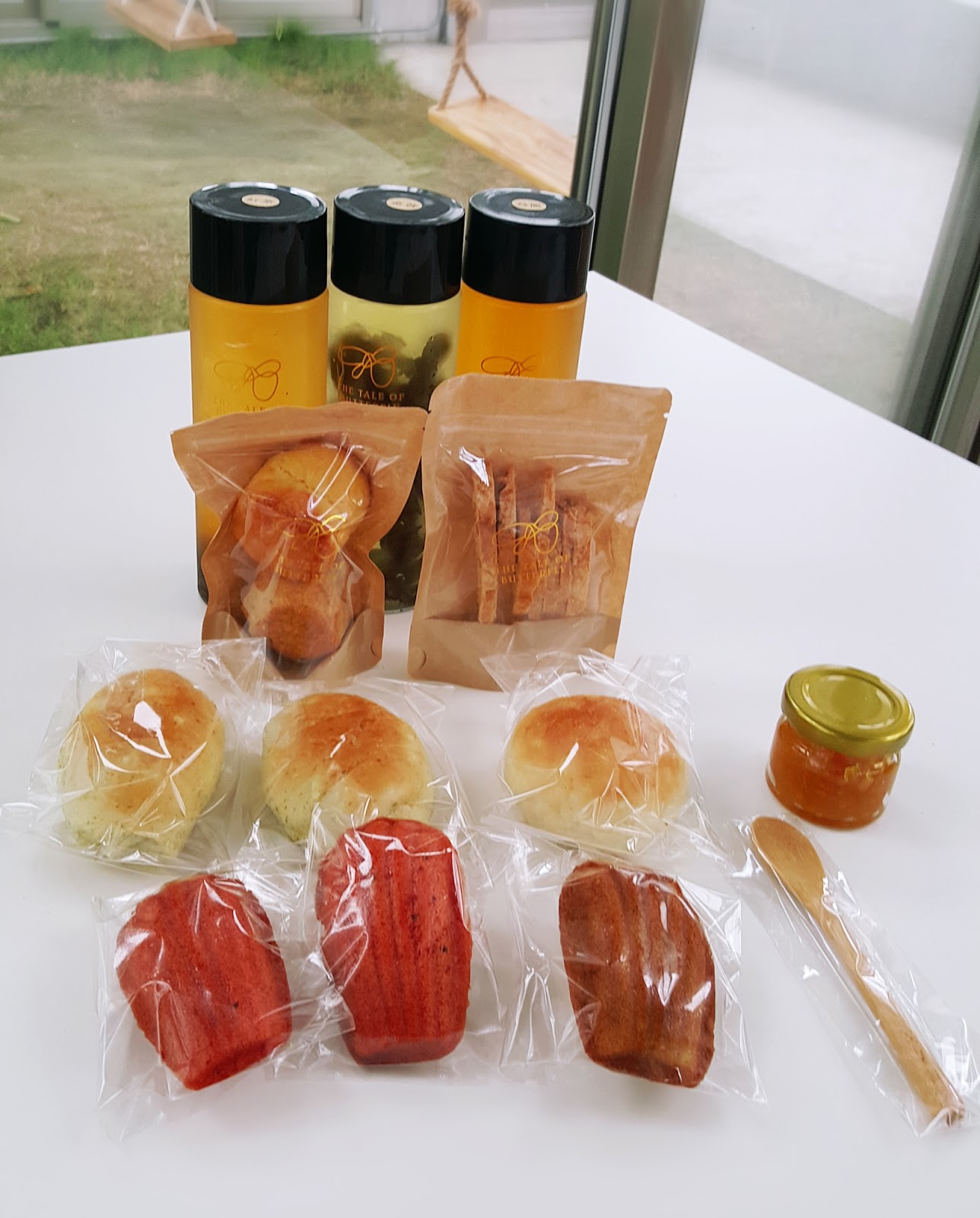 像是加入司康和可頌的「野蓮」(一般俗稱的水蓮菜),就是屬於美濃的農特產。客家特色「擂茶」和法式傳統小點「瑪德蓮」併出新火花,讓甜點心吃起來有微微花生芝麻香氣,口感很有層次。