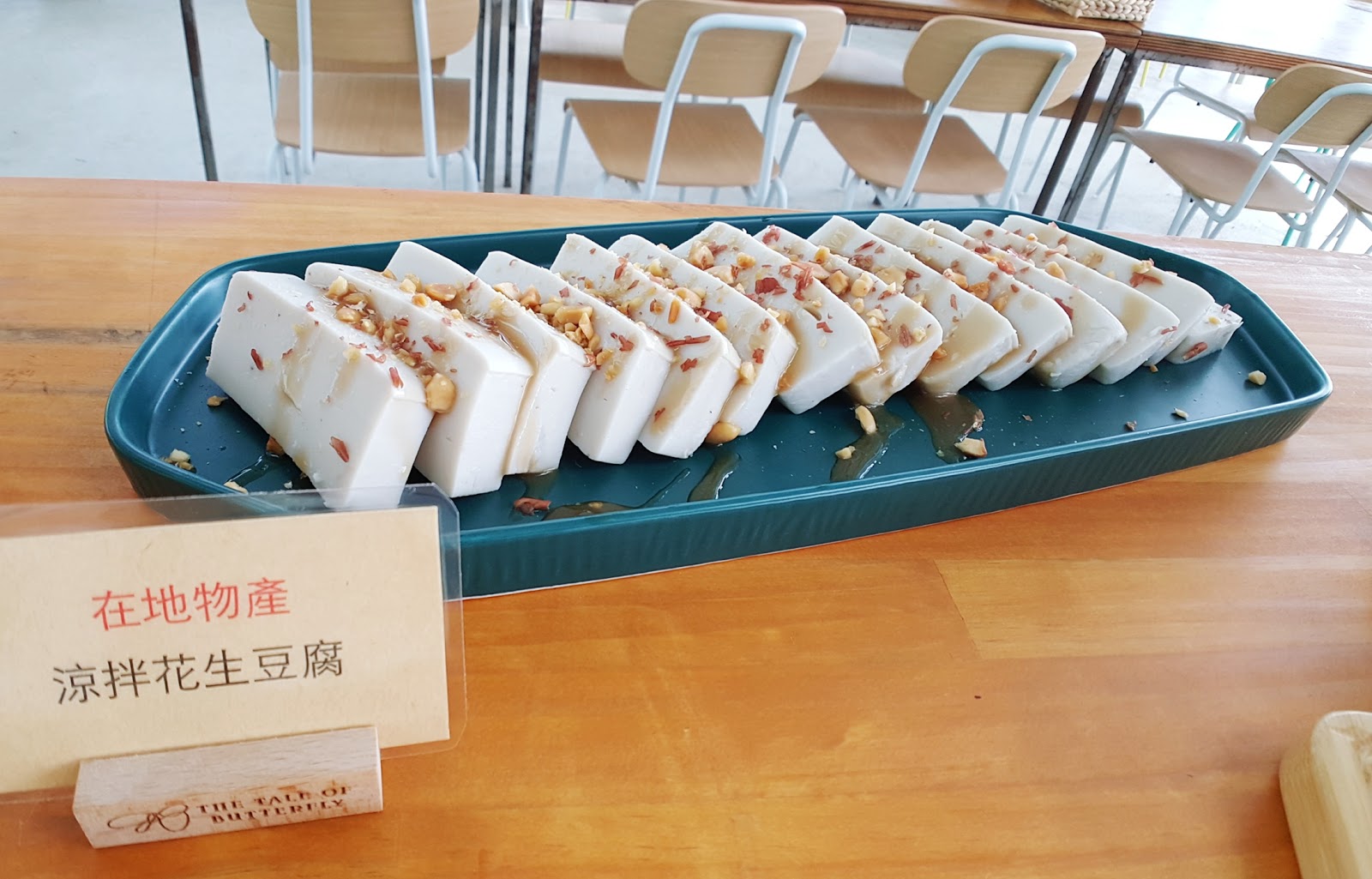 烏龍:碳焙香氣較重,因為使用冷泡,茶味不澀且回甘。 蝶舞澗的餐食相當有特色,從午茶開始,就能看見在地食材和客家文化的蹤跡。