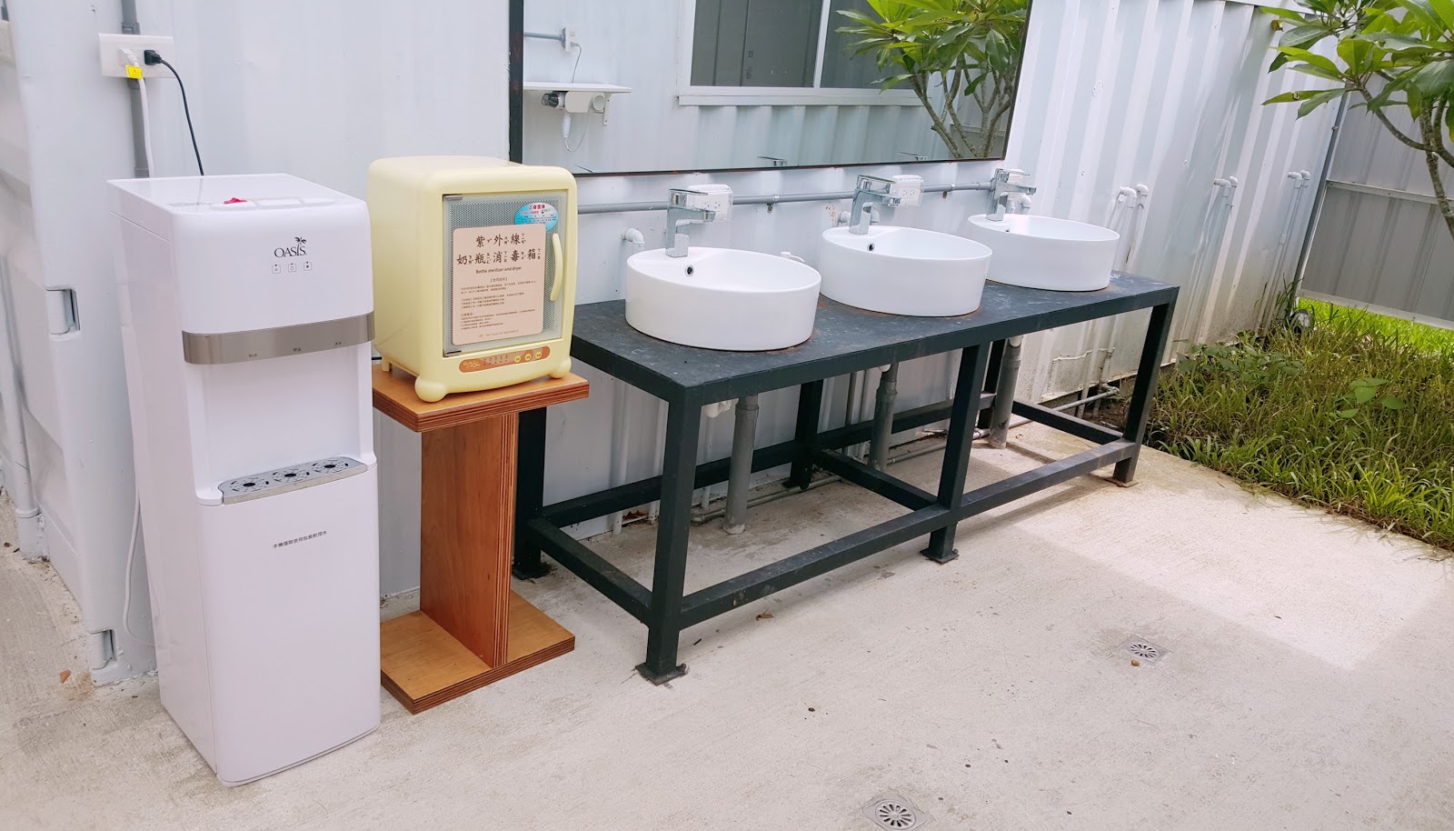 洗手台和飲水機,竟然還有嫩嬰需要的消毒鍋。