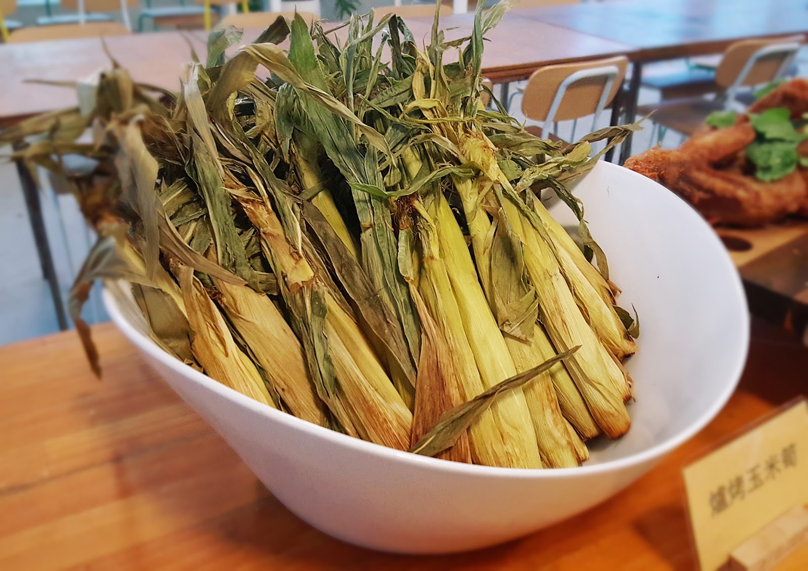 這道菜原是匈牙利遊牧民族的傳統料理,用牛肉和多種蔬菜一起燉煮,像是番茄、洋蔥、紅椒等等,蝶舞澗將客家高麗菜酸加入烹調,讓這鍋燉肉多了在地風情,沾麵包或直接單吃都好吃。 爐烤玉米筍