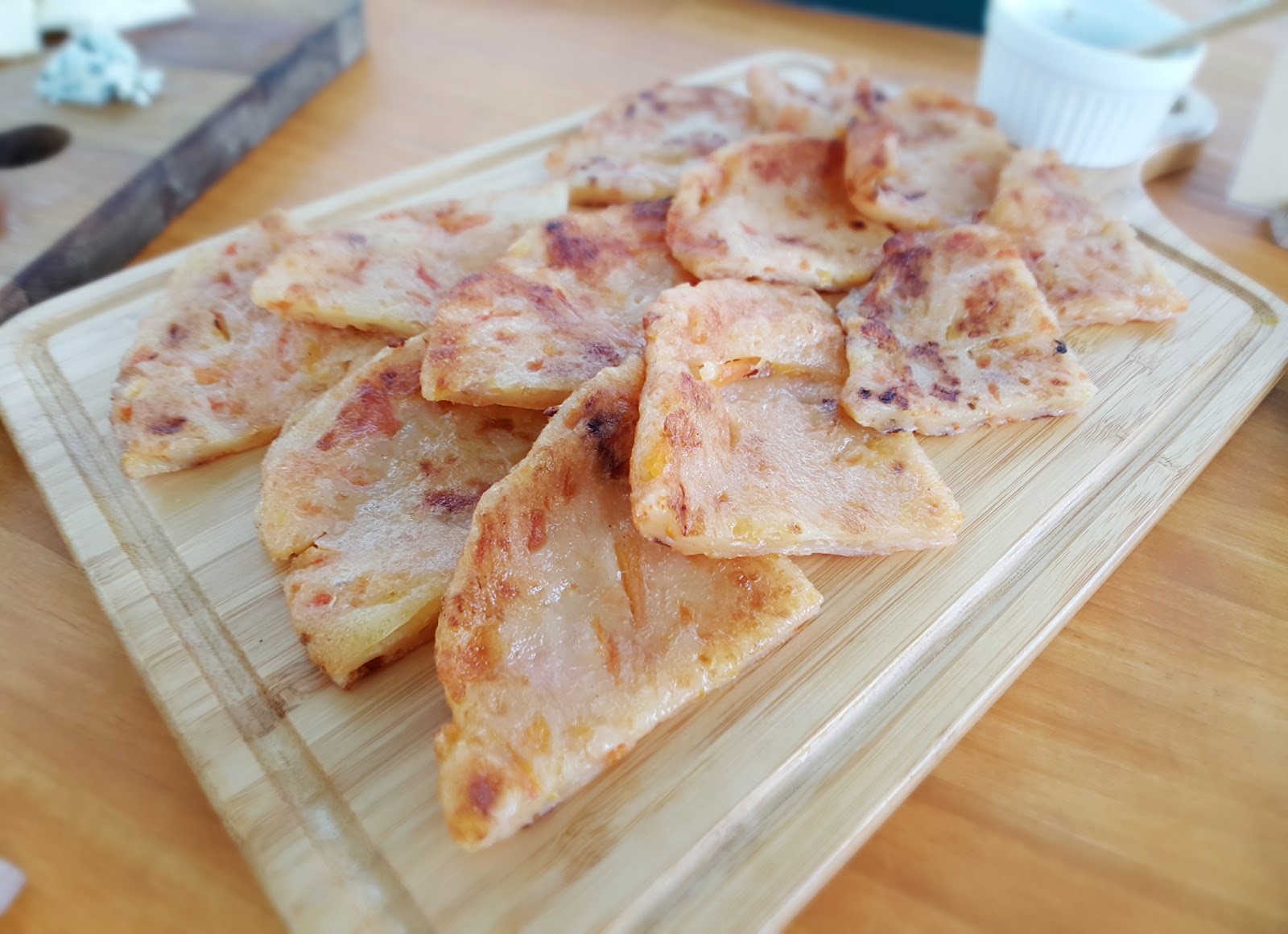 這道是第一次嚐到的客家料理,用半熟木瓜絲拌入麵粉油煎,嚼起來有點像蔥油餅,但清甜的木瓜絲和在其中感覺很清爽。