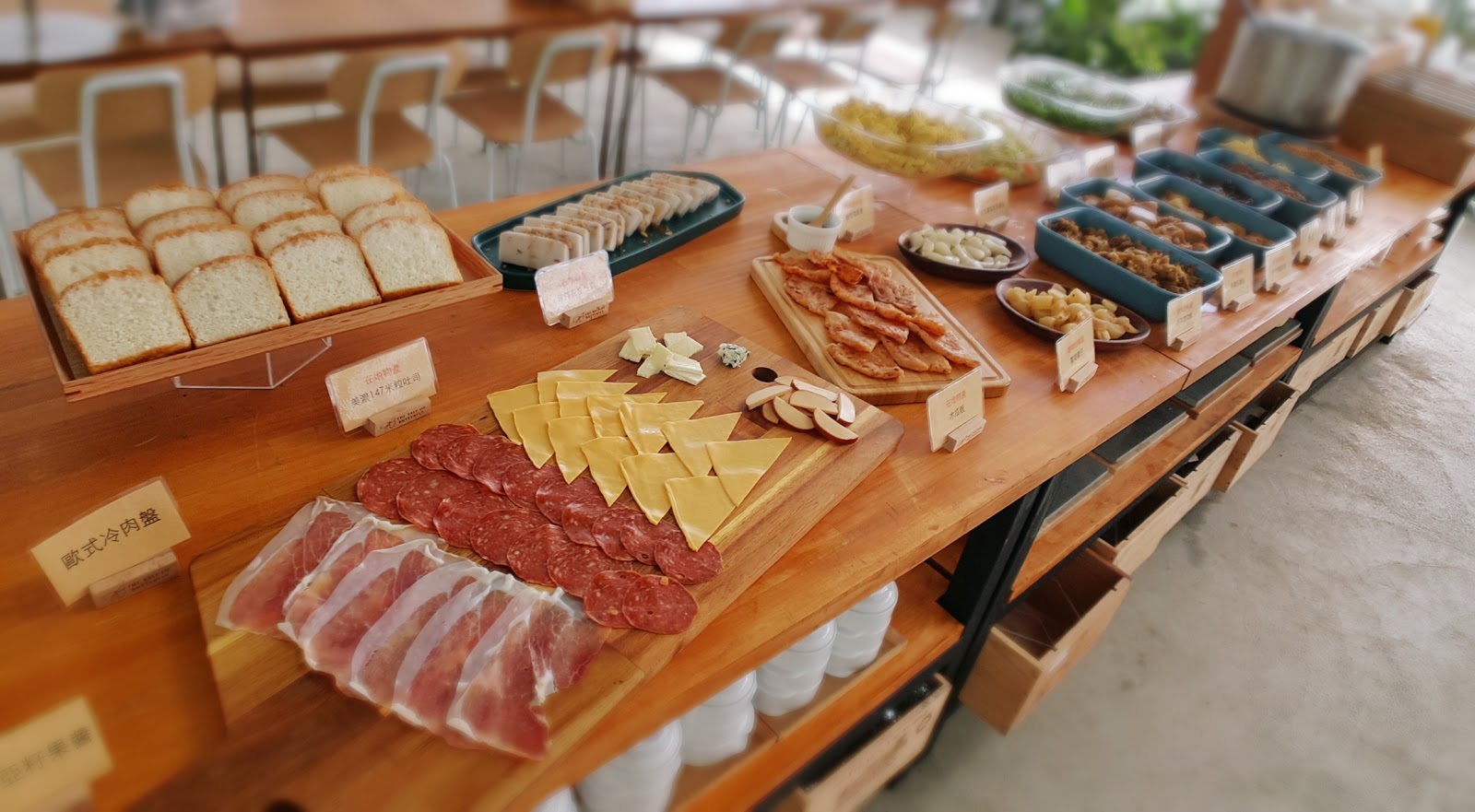 西式早餐的麵包是 147米粒吐司,起司有兩三種,還有歐式肉盤。