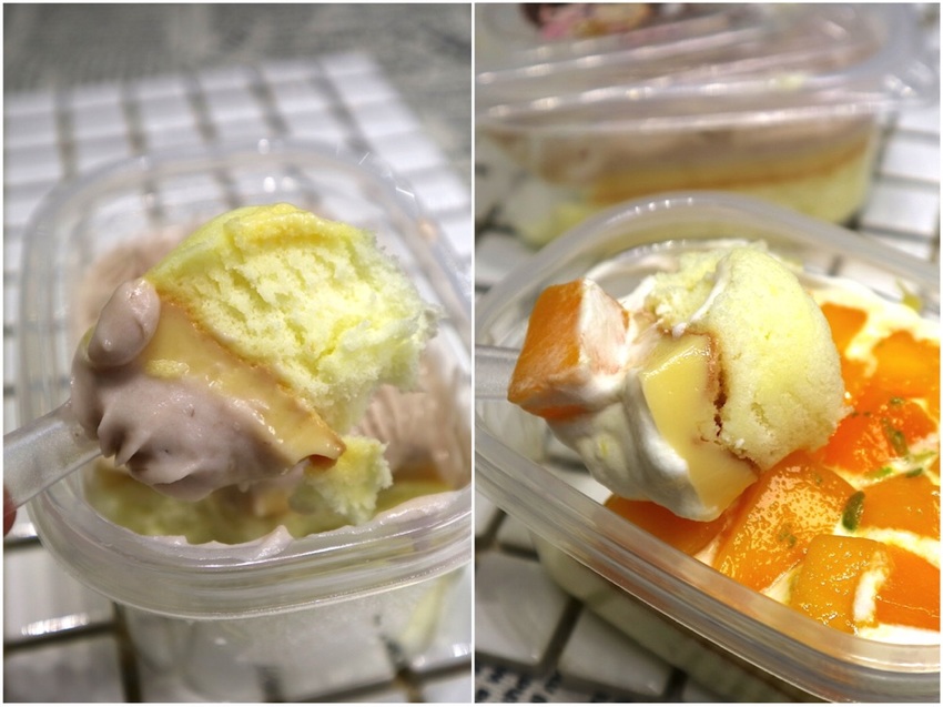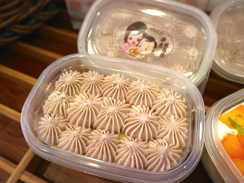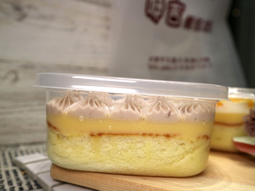 《盒泥香芋》的部分,則是:底層-原味蛋糕+中間-特製布丁+上層-特調芋泥餡。
