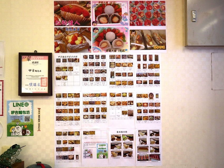 基本上,《咿吉麵包坊》的麵包品項滿多種的,有:吐司類、法國類、丹麥類、歐式類、軟式類…,加上季節限定的創意品項+蛋糕+古早味西點,以目錄來說,超過百種選項。