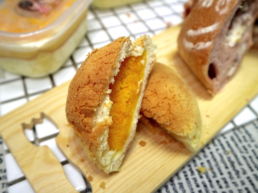 迷你版的小波蘿,吃起來可不簡單!《奶皇小菠蘿》裡面有著鹹甜內餡,我們都吃不出來是什麼味道,以為是地瓜或南瓜(但是又沒地瓜南瓜特有的味道~“~),後來查店家目錄才知道!!!