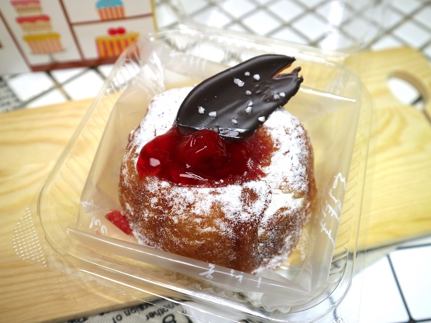 這份《熱戀》,則是店家新品,所以還有特價喔!外皮是甜甜香香的丹麥麵包皮,上方有酸甜櫻桃糖漿,內側還吃得到蔓越莓果粒唷!