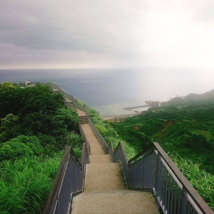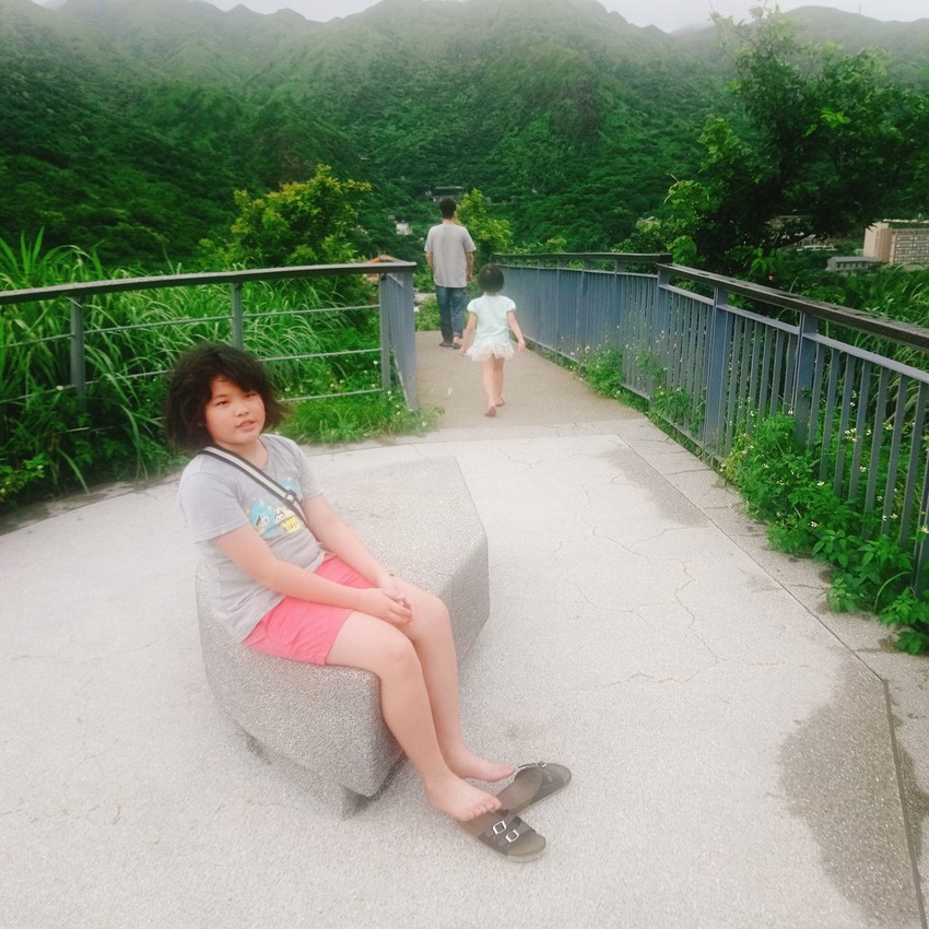 爬著166公尺的步道,我很得意地跟先生說,我找了好幾個步道,總算找到最適合你的