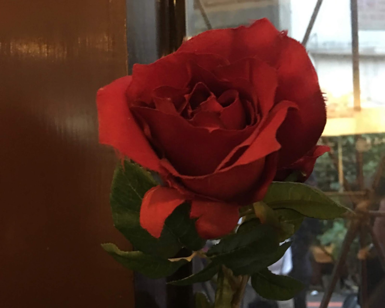 終於到了17:30日本老闆開始安排大家進場,店內的座位是吧台座位,一次進場八人,包含小孩唷! IR算是運氣不錯,第二輪進場,按照老闆在FB的描述“就是領取日本遊樂園fast pass的概念”。當第一輪的客人坐在吧台吃的時候,IR站在他們後方看,一直流口水,看著外面排隊的人,想著快到我了吧,嘿嘿!哈哈,看著旁邊的玫瑰花裝飾,一邊等吃飯。