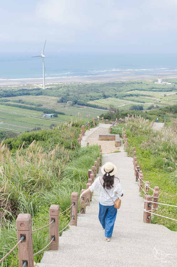 走回通往舊砲台的步道,雖然是短短的距離,卻覺得特別心滿意足,看著山坡上的風車、轉頭看看山腳下的稻田、再望向遠方的大海,好友忍不住說了句:「好可愛,這裡好像濟州島,我去濟州島的時候有去到一個地方,跟這裡真的長得好像。」