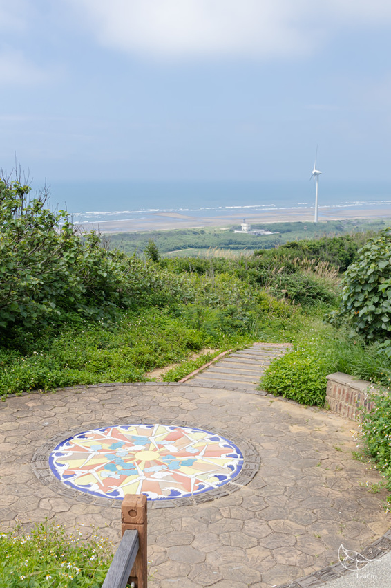 通往舊砲台的路和左邊岔路的分界點,中間的地標馬賽克裝置是以風車作為整體意象,同行的少女友人看到忍不住驚呼:「好可愛喔這個好像魔法陣!」(笑)