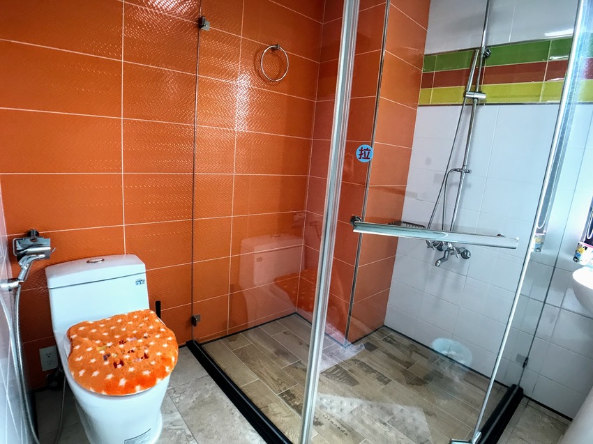 【乾淨橘色系的乾濕分離浴廁】